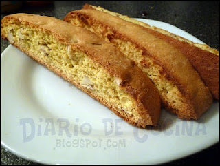 Retirar del horno y cortar en tajadas de 2 cm de ancho para formar los biscotti.
